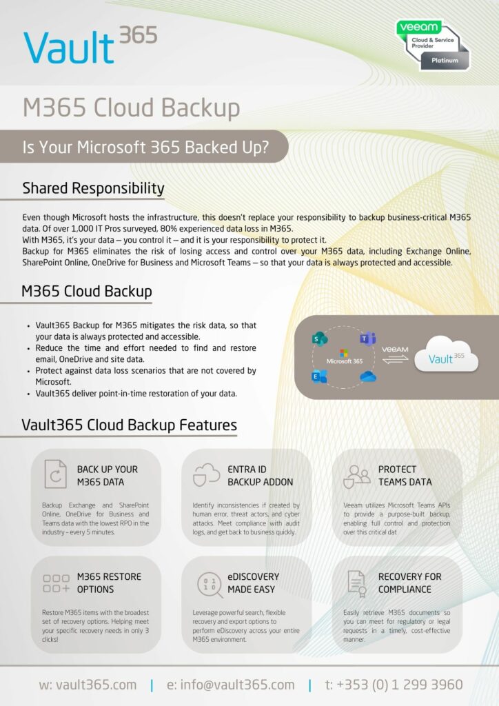 Microsoft takes care of quite a bit, and provides a great service for their customers. However, Microsoft’s primary focus is on managing the Microsoft 365 infrastructure and maintaining uptime to your users. They are empowering YOU with the responsibility of your data. The misconception that Microsoft fully backs up your data on your behalf is quite common, and without a shift in mindset, could have damaging repercussions when this responsibility is left unattended.